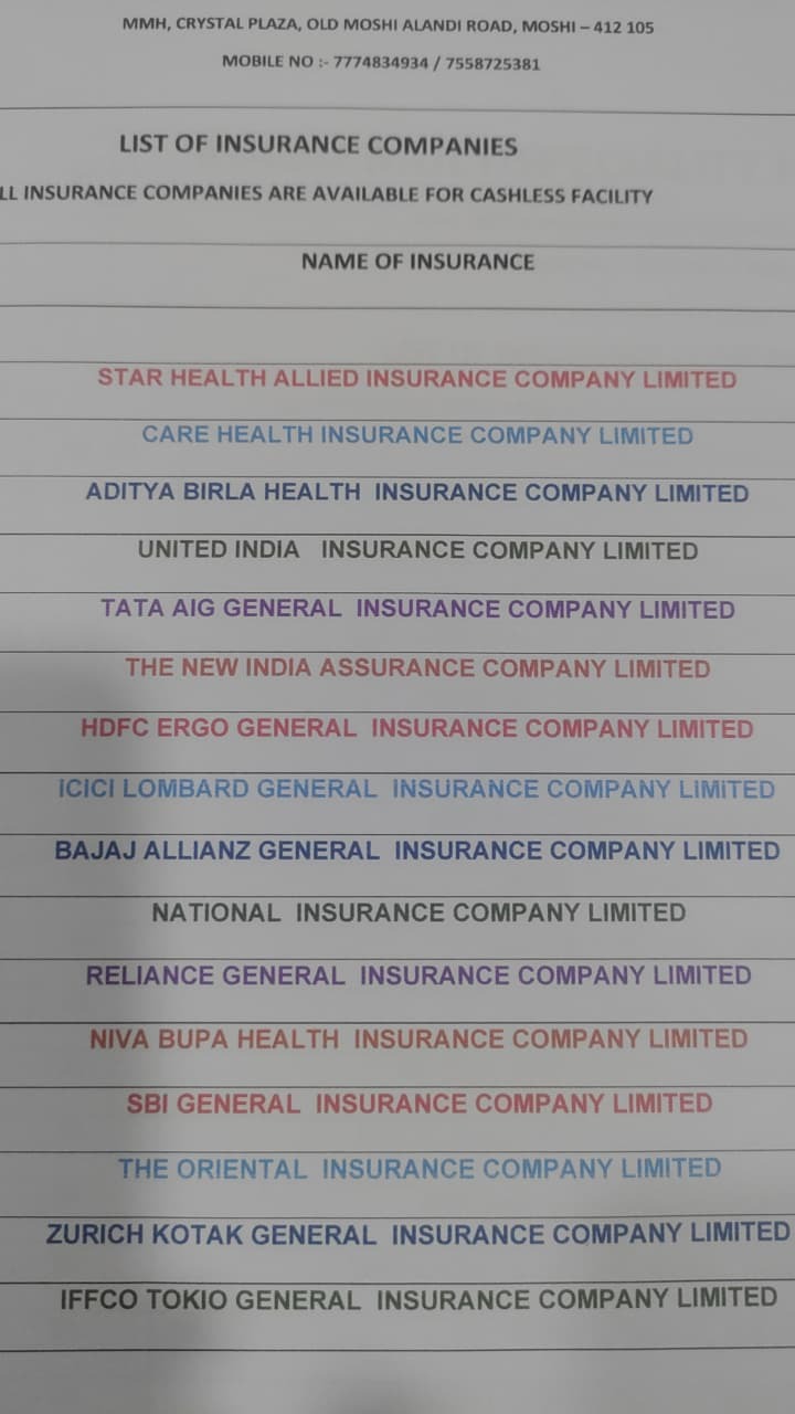 Mauli Multispeciality Hospital, Alandi - Moshi Road, Moshi Gaon, Moshi, Pimpri-Chinchwad, Maharashtra, India Mobile No. 7558725381